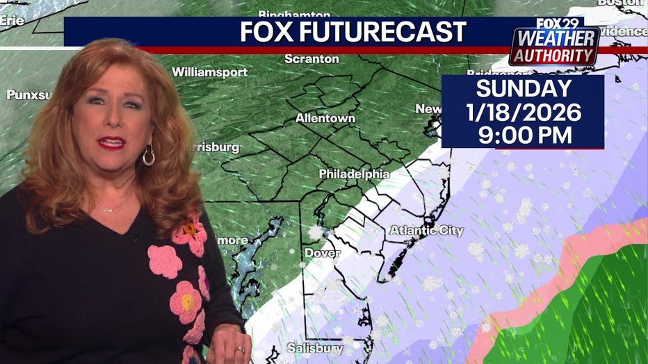 Sunday's storm will be mostly coastal, but could creep into interior parts of New Jersey and Delaware.