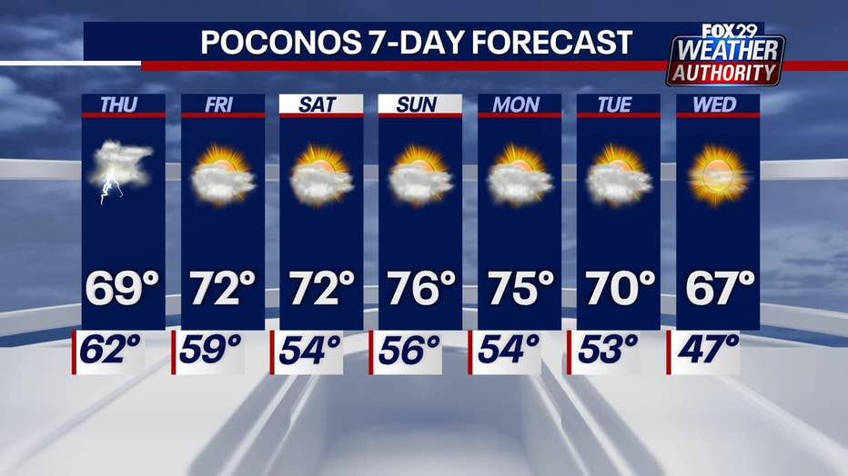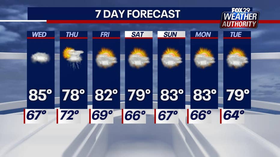 Today, Wednesday, September 24, is expected to be warm and humid, with a high of 83 degrees. There is a chance of scattered thunderstorms and showers, particularly around sunset in the Lehigh Valley area, according to FOX 29 Meteorologist Sue Serio.