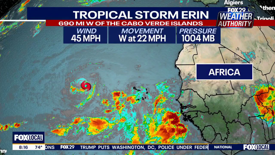 Tropical Storm Erin is currently located about 560 miles west-northwest of the Cabo Verde islands, where seven people were killed by the system on Monday, according to FOX Weather.