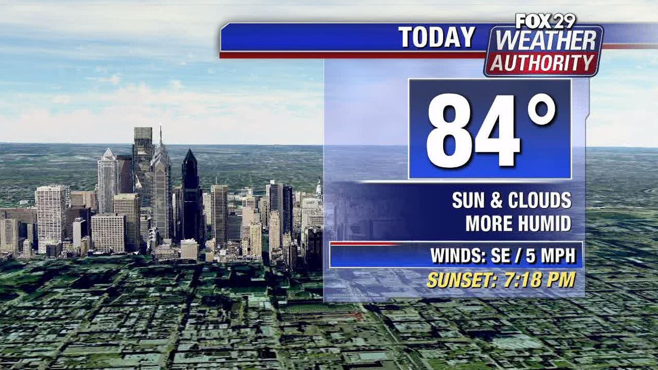 PHILADELPHIA - The Philadelphia area is slated for a muggy Tuesday with a mix of morning sun and afternoon clouds.